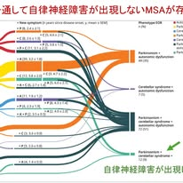 一方,小脳症候で発症した患者は,早期から自律神経障害やパーキンソニズムへ枝分かれし,疾患の多系統化がもっとも早い群でした.これは従来の報告とも一致し,小脳発症MSAの疾患進行の速さを裏づけています.