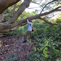 大榎の枝にぶる下がっているのは・・・続いて女子若組の木登りが始まりました🎶 秋日和の広町緑地公園は元気学校の校條さん率いる気まポグループと北鎌倉コアクループ、そして西鎌倉・腰越PWグループの皆さんと合同の里山ポール歩きの会。 前回雨天中止の振替イベントに15名参加してくださいました。初顔合わせの方々とは思えない程感動的思いやり深いメンバー揃いでした。皆さんに感謝です。