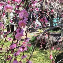 見事に咲き誇る垂れ梅 日蓮聖人の龍ノ口法難に由来する「龍口寺輪番八ヶ寺」の1つ常立寺 腰越行政センターでウォーミングアップのあとポールウォーキングで腰越の垂れ梅で名高い常立寺を訪ねました。少々距離が遠かったので残念ながら手押し歩行器のお二人は途中でUターン。古い広大な豪邸と新しい瀟洒な建物が混在する腰越の山側の住宅地は不思議な発見がありました。往復通りがかった江ノ島近く龍口寺は節分の豆撒きの用意の真っ最中でした。