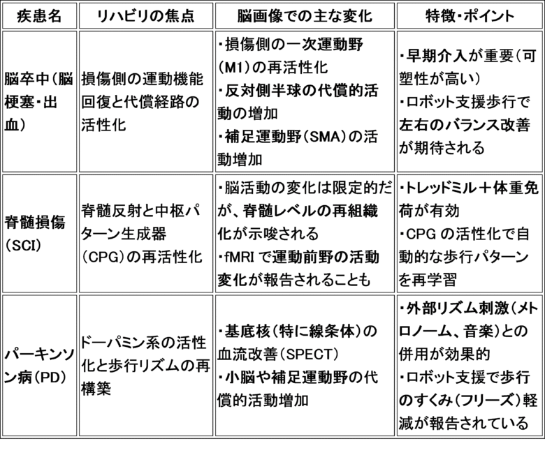 🧠 疾患別:歩行リハビリによる脳の変化と特徴